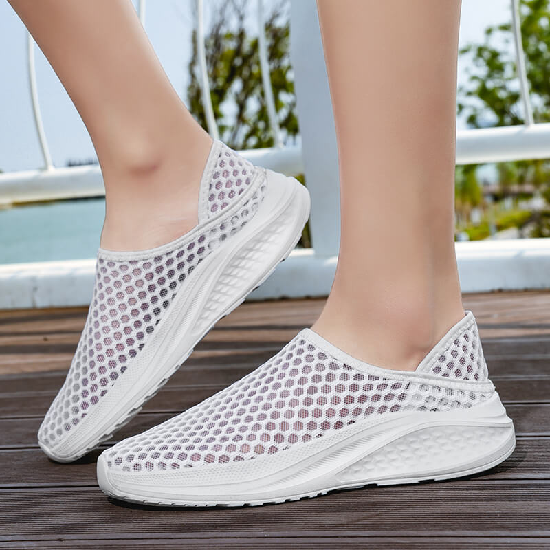 La tige en mesh respirant assure une excellente circulation de l’air et un séchage rapide, offrant une sensation de ventilation tout au long de la journée. Cette structure aérée épouse la forme du pied tout en limitant les frottements, garantissant un confort optimal jusqu’à la fin de vos journées. Ultra légères, ces chaussures se chaussent facilement grâce à leur conception slip-on, idéale pour un usage quotidien sans contrainte.