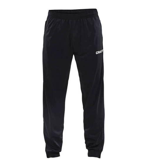 Pantalon d’entraînement CRAFT, extensible en tissu fonctionnel qui offre une évacuation d’humidité supérieure pour des performances maximales, fermetures éclair au bas des jambes pour faciliter le passage des pieds/jambes, poches latérales zippées, ceinture élastique et cordon de serrage.