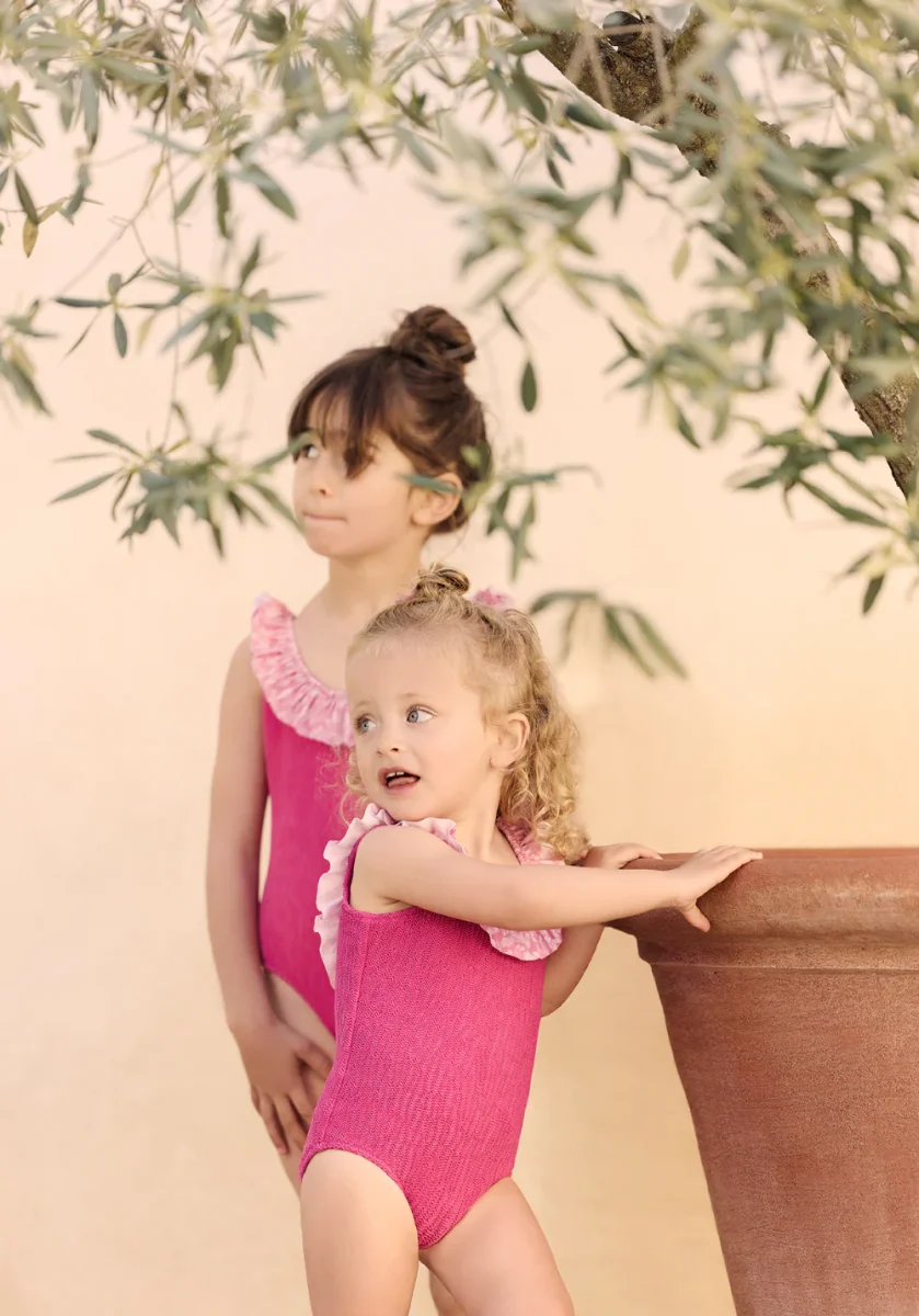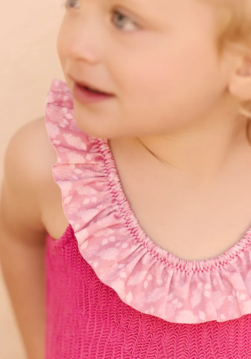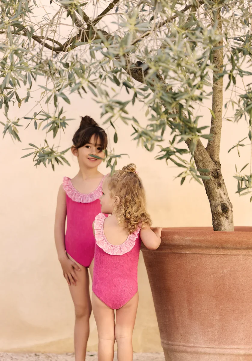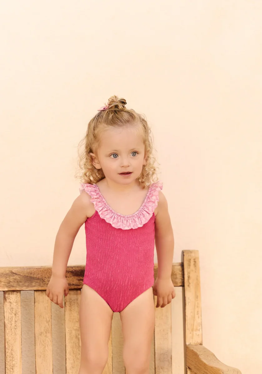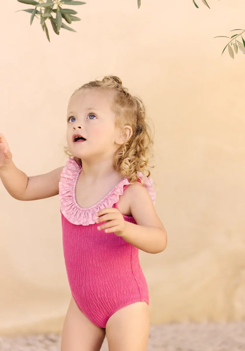 Issue de la collaboration entre Luz et Tartine et Chocolat, ce maillot de bain une pièce pour fille, dans un délicat coloris framboise, se pare de volants raffinés qui apportent douceur et légèreté. Pensé pour s’associer parfaitement au modèle femme de la même collection, il crée un duo mère-fille élégant et complice. Confortable et facile à enfiler, il accompagnera les petites filles dans toutes leurs escapades estivales.